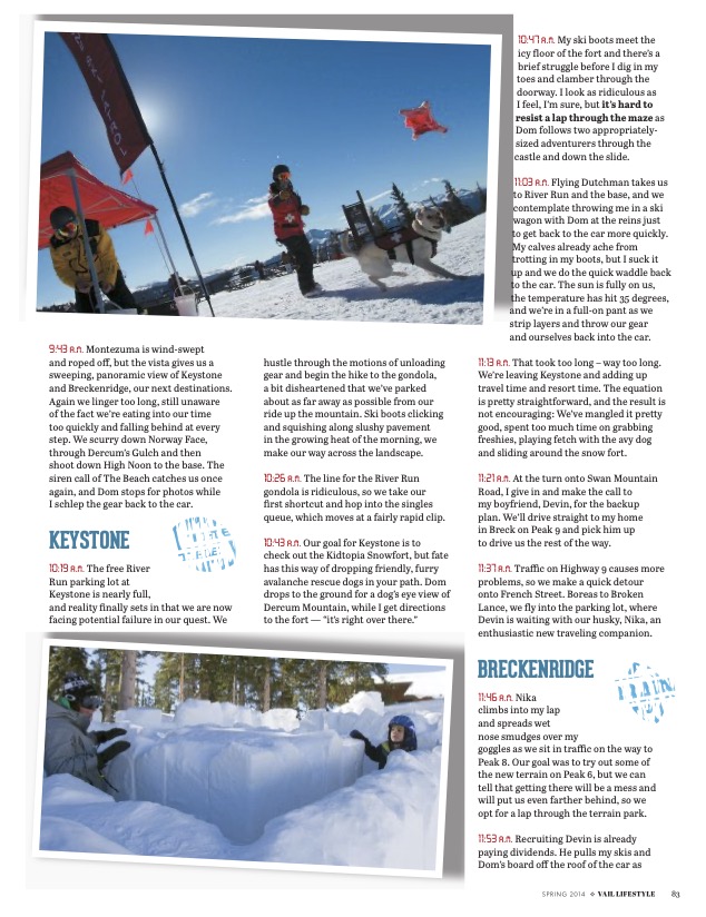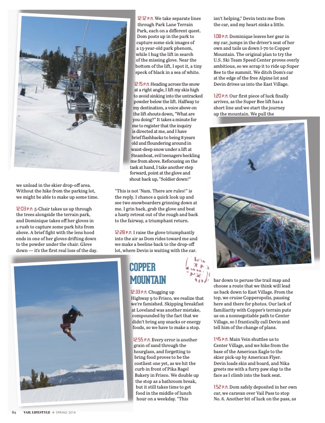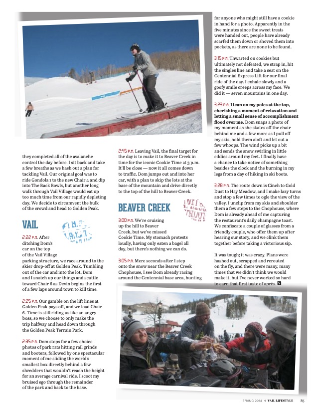 This article was published in the Spring 2014 editions of Explore Summit and Vail Lifestyle magazines. It won Third Place for Best Sports Story in Class 7 of the Colorado Press Association 2014 Awards.