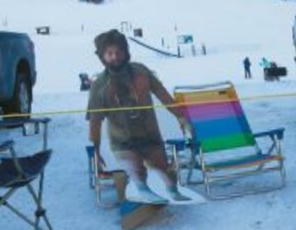 9:20 a.m. The Beach is still half asleep, and we manage a spot in the lower lot close to the edge of the snow. A few revelers are setting up camp chairs and cordoning off party zones. We stop to shake hands with a cardboard cutout of Zach Galifianakis, whose flesh-and-blood companion has already cracked his first (or second or third) beer of the day, and then trundle over to the Black Mountain Express, which will take us to mid-mountain.