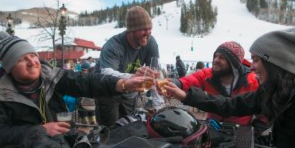Adventurers salute with glasses during the daily Champagne toast at the Beaver Creek Chophouse.